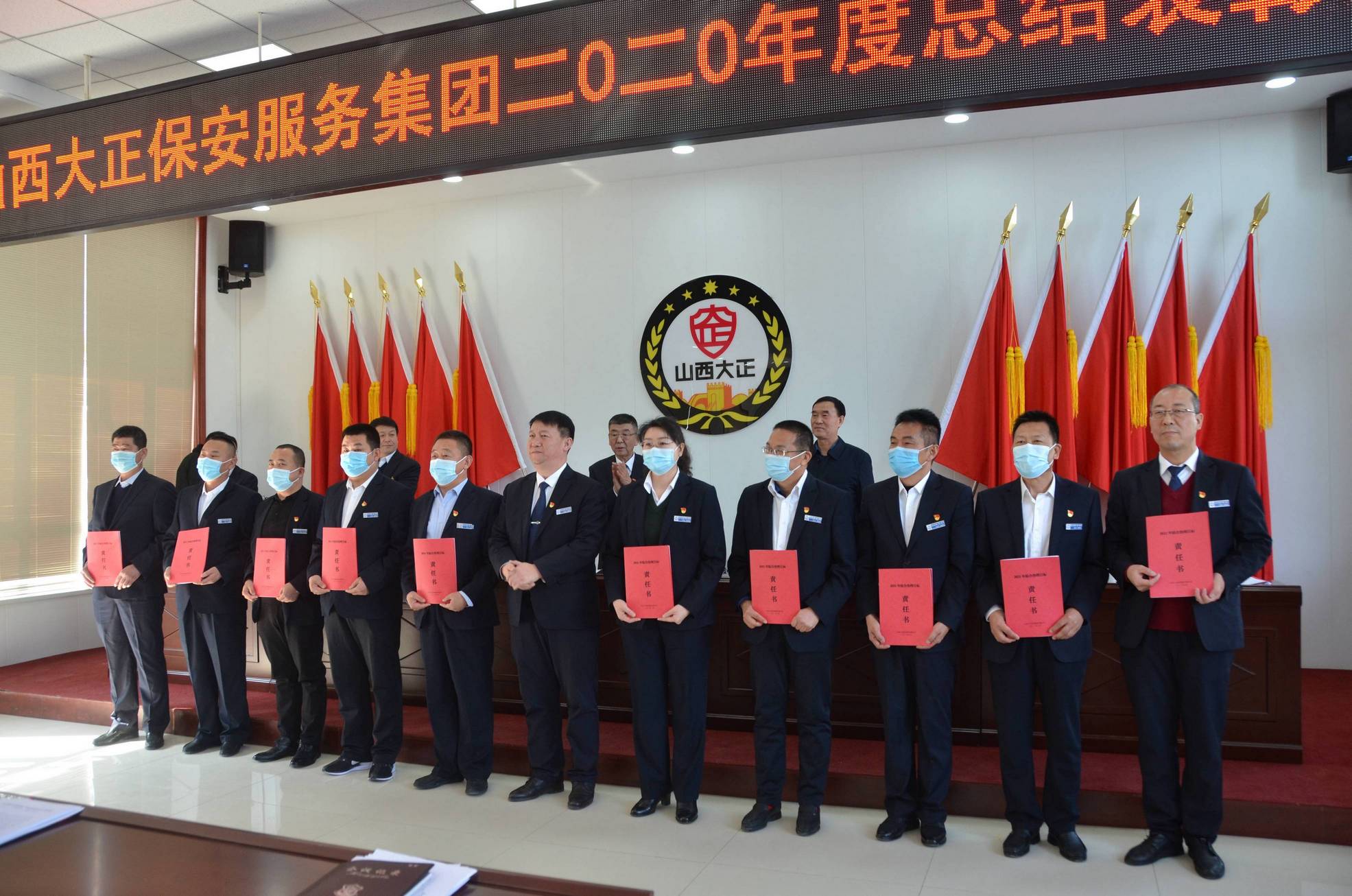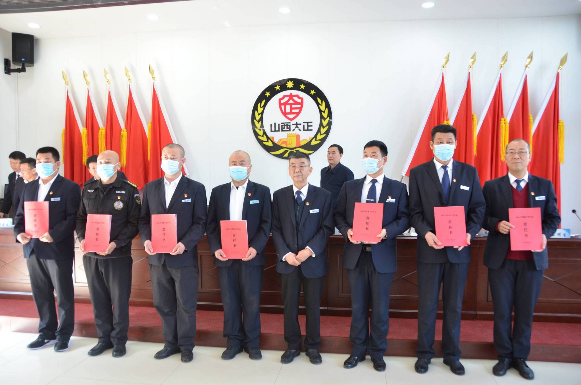 會(huì)上,黨委書記、董事長張躍生向公司各子公司、各部門、各黨支部負(fù)責(zé)人頒發(fā)了黨建目標(biāo)責(zé)任書、黨風(fēng)廉潔目標(biāo)責(zé)任書,黨委副書記、總經(jīng)理趙培宏向公司各子公司、各部門負(fù)責(zé)人頒發(fā)綜合治理目標(biāo)責(zé)任書、安全生產(chǎn)目標(biāo)責(zé)任書。大會(huì)在《大正保安之歌》歌聲中圓滿落幕。