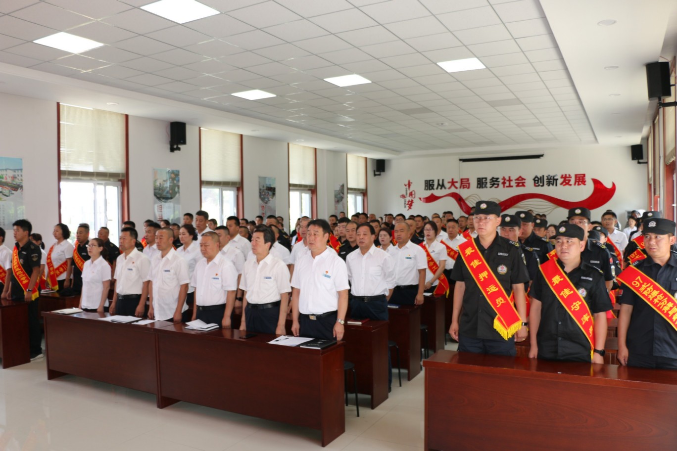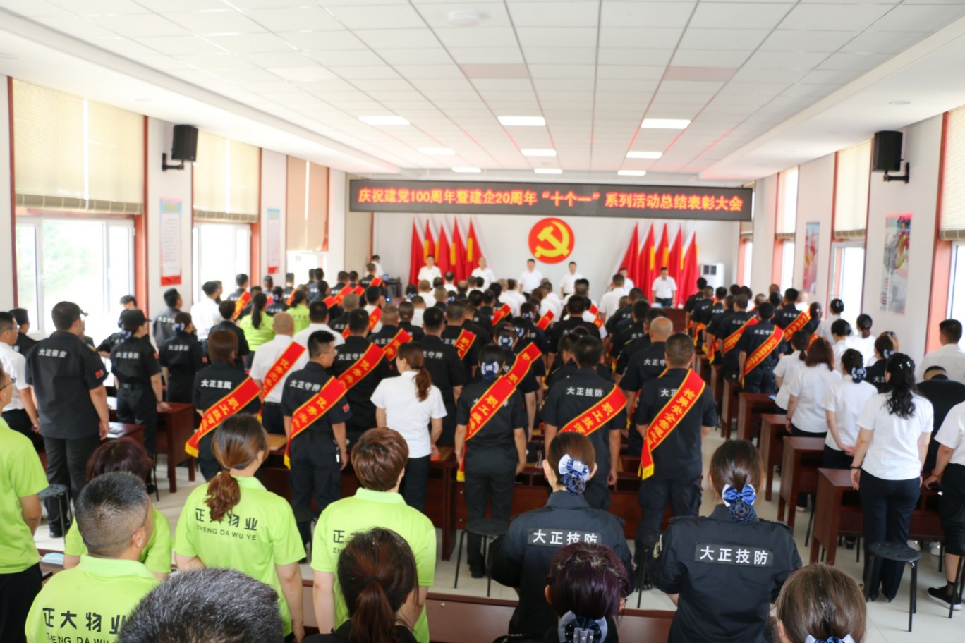 為熱烈慶祝中國共產(chǎn)黨成立100周年,頌揚(yáng)黨的光輝歷程,謳歌黨的豐功偉業(yè),傳承黨的優(yōu)良傳統(tǒng)和回顧公司發(fā)展歷程,不斷激發(fā)和進(jìn)一步激勵(lì)廣大黨員、干部職工統(tǒng)一意志、團(tuán)結(jié)拼搏,創(chuàng)先爭優(yōu)的奮斗熱情,實(shí)現(xiàn)公司更好更快發(fā)展、全面完成全年各項(xiàng)目標(biāo)任務(wù),6月30日上午,中共山西大正保安服務(wù)集團(tuán)有限公司委員會隆重召開慶祝建黨100周年暨建企20周年“十個(gè)一”系列活動(dòng)總結(jié)表彰大會,公司班子成員、中層以上領(lǐng)導(dǎo)、受表彰的先進(jìn)集體代表和先進(jìn)個(gè)人、2020—2021年度新發(fā)展黨員共計(jì)160余人參加會議,大會由集團(tuán)公司黨委委員、副總經(jīng)理王明生同志主持。