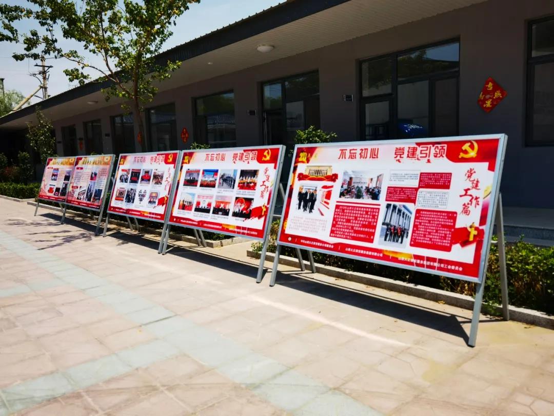 公司大院紅旗飄揚(yáng),慶祝中國共產(chǎn)黨成立100周年“百年華誕、世紀(jì)獻(xiàn)禮”大型標(biāo)識牌奪目耀眼,二十三塊反映山西大正保安服務(wù)集團(tuán)有限公司建企20周年展板向人們無聲講述公司20年來非凡成就。