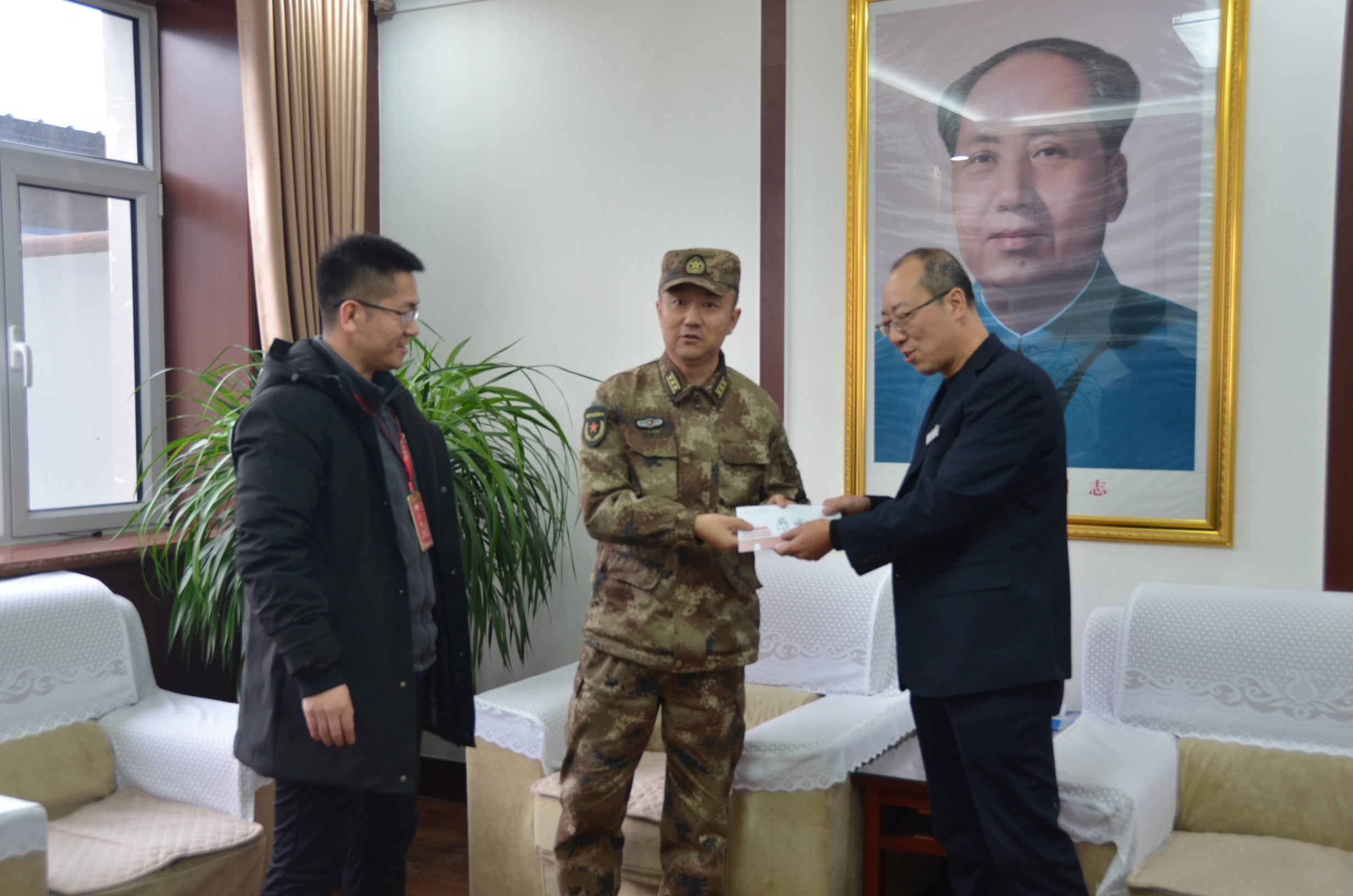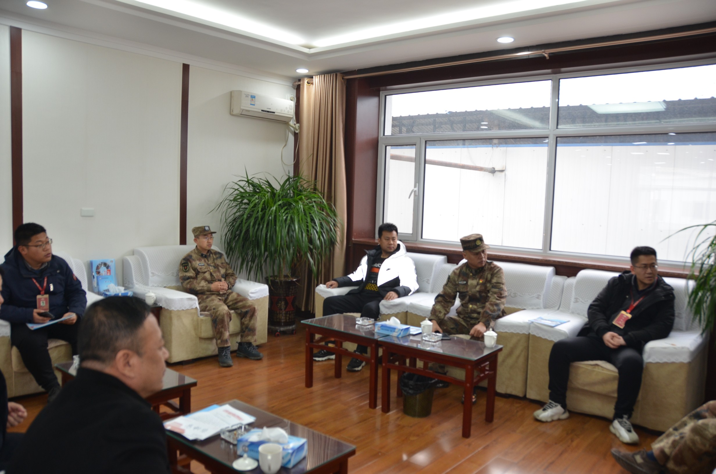 2月10日,忻府區(qū)人武部部長李強和忻州古城相關負責人一行五人為物業(yè)公司民兵應急連送來一封熱情洋溢的感謝信,與集團公司黨委委員、副總經(jīng)理王明生等領導座談交流。