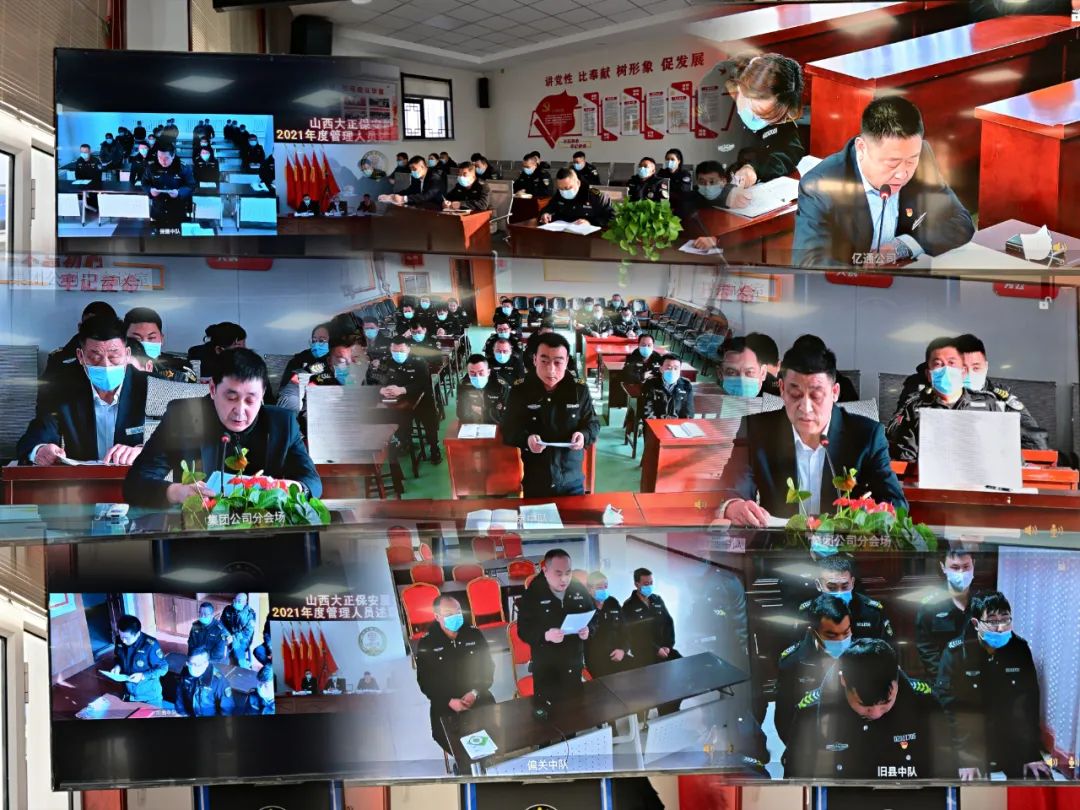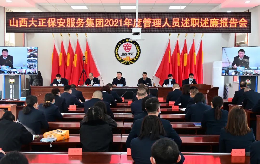2022年1月8日-9日,山西大正保安服務(wù)集團有限公司召開2021年度管理人員述職述廉報告視頻會議,大會主會場設(shè)立在總部會議室,黨委副書記、總經(jīng)理趙培宏出席會議并作重要講話,黨委副書記、副總經(jīng)理陳志平主持會議,公司黨政領(lǐng)導(dǎo)班子成員出席會議,各部門負責人及員工代表參會,各分公司、子公司、各縣市基層中隊共計21個分會場以視頻方式參會。