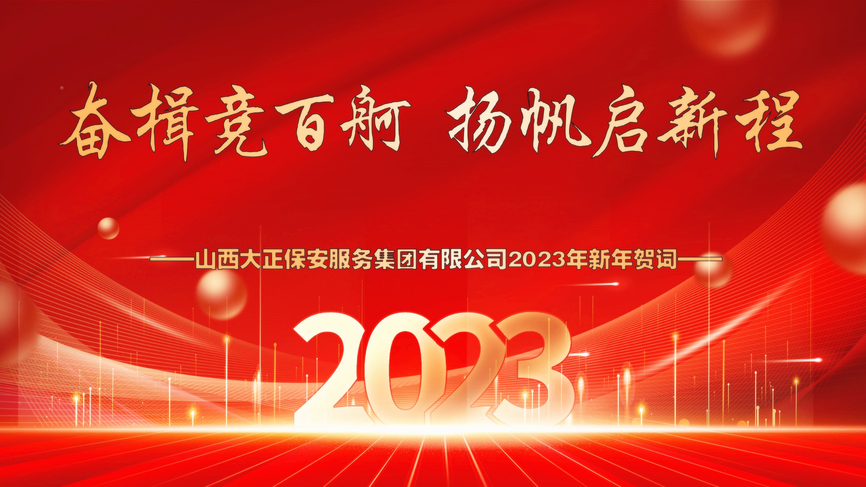 歲序更替,華章又新。2023的新年即將來臨,在這辭舊迎新、充滿希望的美好時刻,山西大正保安服務集團有限公司黨委、董事會及經(jīng)理班子,向集團公司全體黨員、干部、職工及背后默默支持大家的家屬朋友們,致以新年的祝福和節(jié)日的問候!向始終關心山西大正保安集團發(fā)展建設領導和同仁;向長期以來給予山西大正保安集團支持、信任的客戶和合作伙伴致以最衷心的感謝和最誠摯的新年祝福!