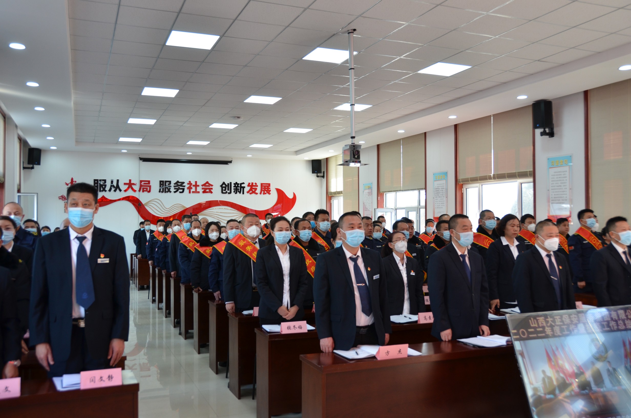 趙培宏在隨后的講話中指出:我們大正的英雄是奮戰(zhàn)在一線的戰(zhàn)士以及每一個奮斗的大正人。今天大會表彰的先進(jìn)集體和個人都是員工隊伍中的優(yōu)秀代表。他們在各自的工作崗位用汗水澆灌收獲,用奮斗詮釋擔(dān)當(dāng),樹起了一面面爭先創(chuàng)優(yōu)的旗幟。2022年集團(tuán)公司全體員工在公司黨委的領(lǐng)導(dǎo)下,搶抓機(jī)遇、迎難而上、共謀發(fā)展,取得了經(jīng)營業(yè)績和客戶滿意的雙重勝利。在攻堅克難中交出了一份優(yōu)異的成績單,營業(yè)總收入持續(xù)保持上升,2022年全年營業(yè)總收入18356萬元,實現(xiàn)利潤804萬元,實現(xiàn)稅金770萬元。對自主經(jīng)營條件成熟的2家子公司--山西大正億通保安安全技術(shù)有限公司、山西大正昇成刻章服務(wù)有限公司試行自主經(jīng)營、獨立核算,檔案管理中心、物流倉儲中心、與四川華飛合作培養(yǎng)航空專業(yè)人才等創(chuàng)新業(yè)務(wù)持續(xù)拓展,推動了山西大正集團(tuán)行穩(wěn)致遠(yuǎn),基業(yè)長青。2022年我們擔(dān)當(dāng)國企使命,在抗疫攻堅中再建新功。面對忻府區(qū)多次突發(fā)疫情,公司成立工作領(lǐng)導(dǎo)小組,員工深入一線積極開展疫情防控工作,積極參與師院東校區(qū)隔離點疫情防控工作,山西大正人用雙手傳遞餐食、用肩膀扛起物資、用腳步丈量責(zé)任、用行動踐行初心。圓滿完成了每一項艱巨繁重的工作任務(wù),為決戰(zhàn)決勝疫情防控阻擊戰(zhàn)作出了重要貢獻(xiàn),并得到了市政府的高度肯定和社會各界一致好評。
