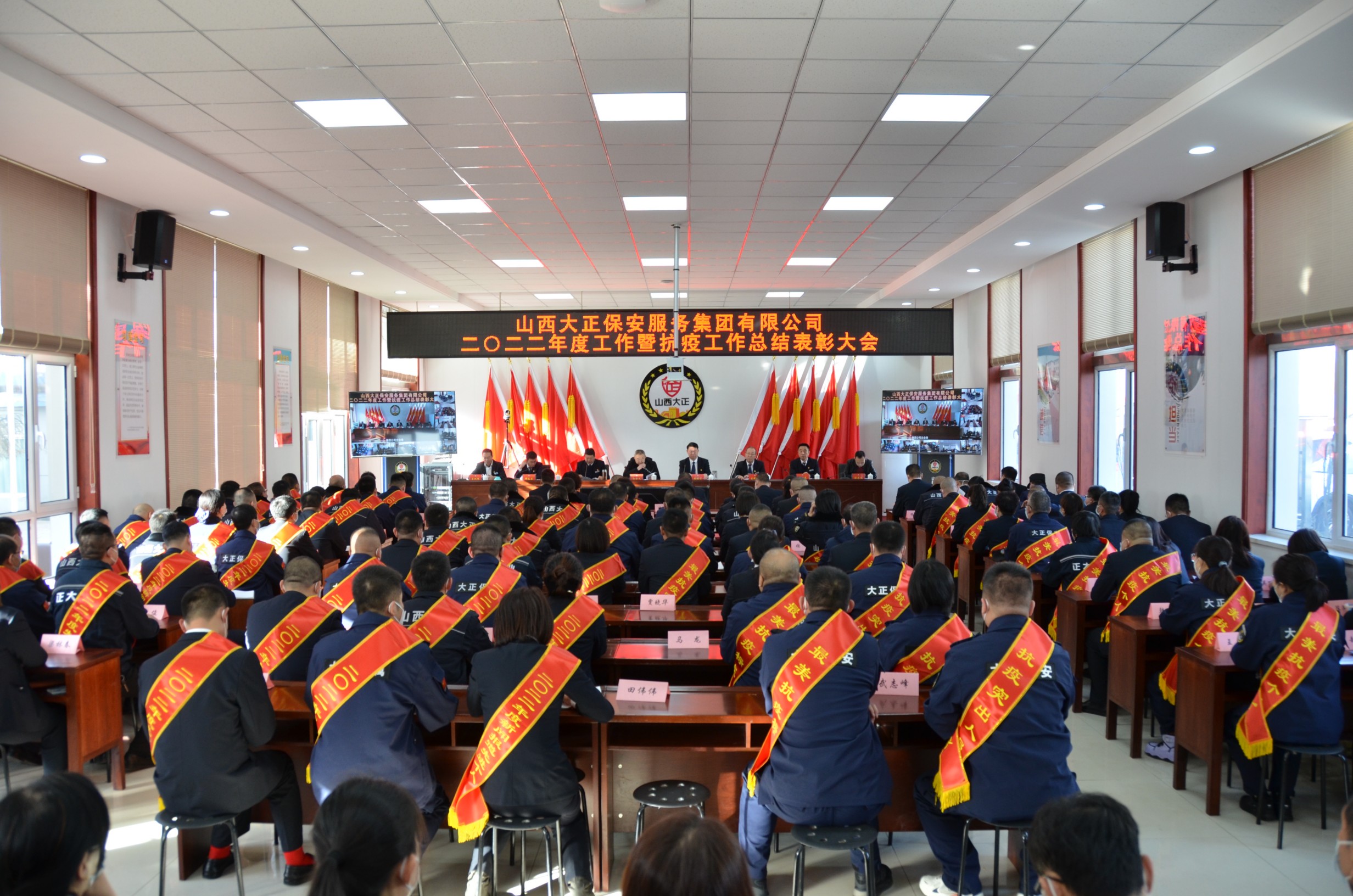 2023年2月1日上午10時在集團(tuán)公司大會議室召開2022年度工作暨抗疫工作總結(jié)表彰大會。會議以視頻會議方式開至各縣、市基層中隊,設(shè)主會場1個、分會場21個,市工信局(國資委)黨委委員、副局長孫子義,產(chǎn)權(quán)科科長劉忠義出席會議。集團(tuán)公司領(lǐng)導(dǎo)、機(jī)關(guān)各部門部長(負(fù)責(zé)人)、子(分)公司領(lǐng)導(dǎo)、受表彰先進(jìn)集體、先進(jìn)個人代表在主會場參會。集團(tuán)機(jī)關(guān)其余人員、保安公司城區(qū)中隊長以上管理人員在中會議室參會;守押各中隊全體人員、保安駐各縣中隊負(fù)責(zé)人在各縣、市分會場參會。會議由集團(tuán)公司黨委副書記、副總經(jīng)理陳志平主持。
