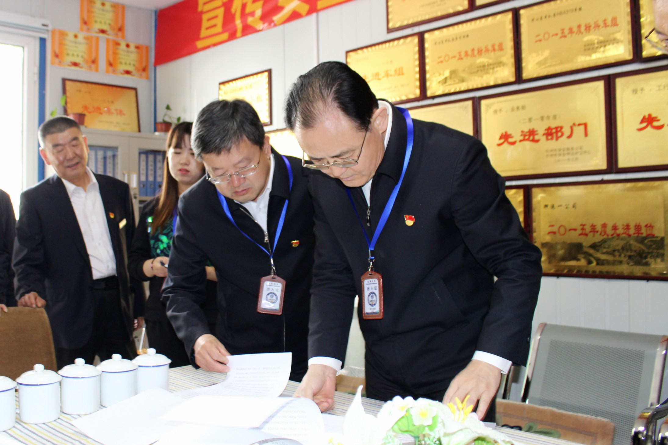 山西省人大常委會副主任、忻州市委書記李俊明在認(rèn)真查看公司黨員學(xué)習(xí)筆記