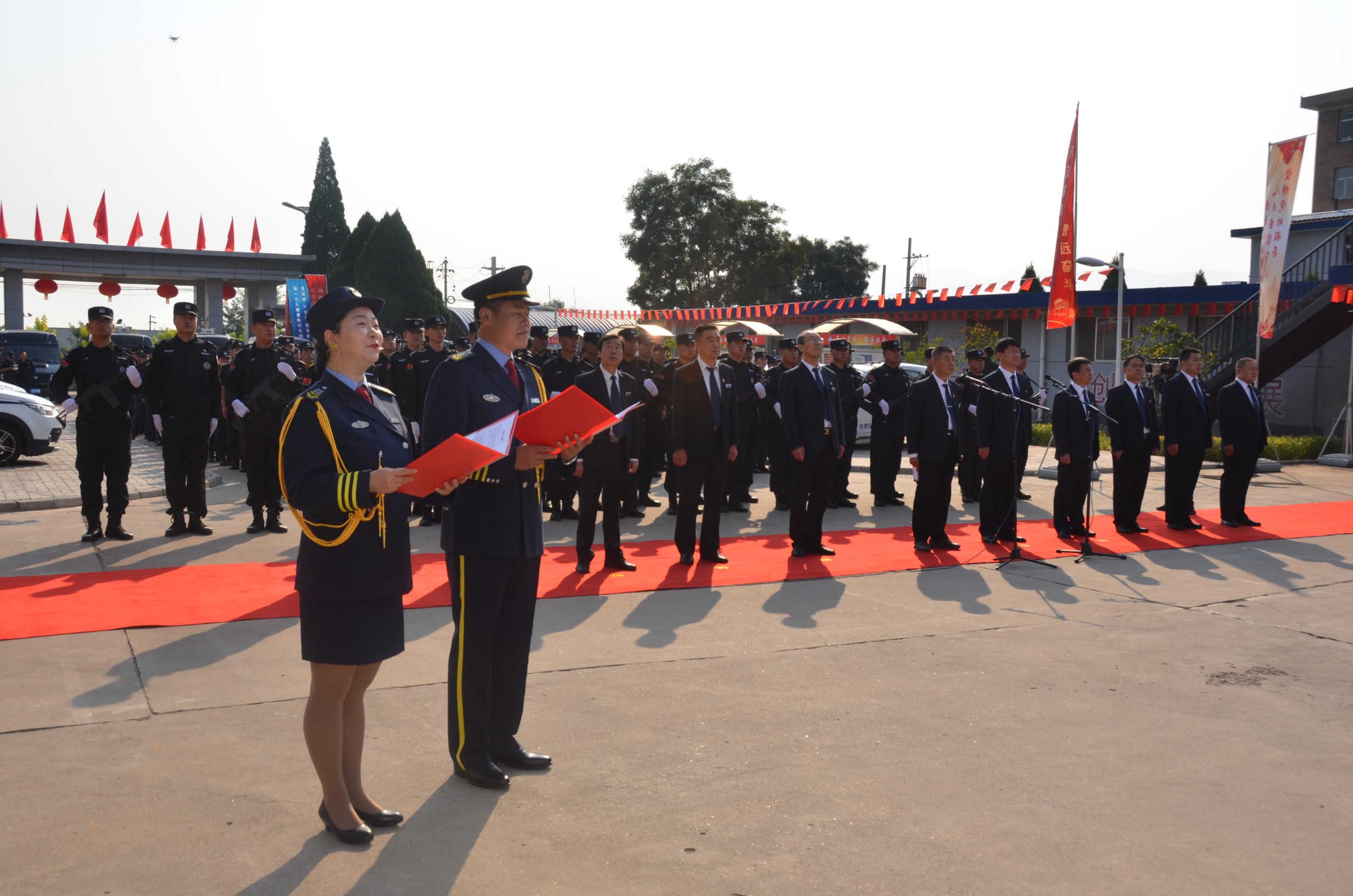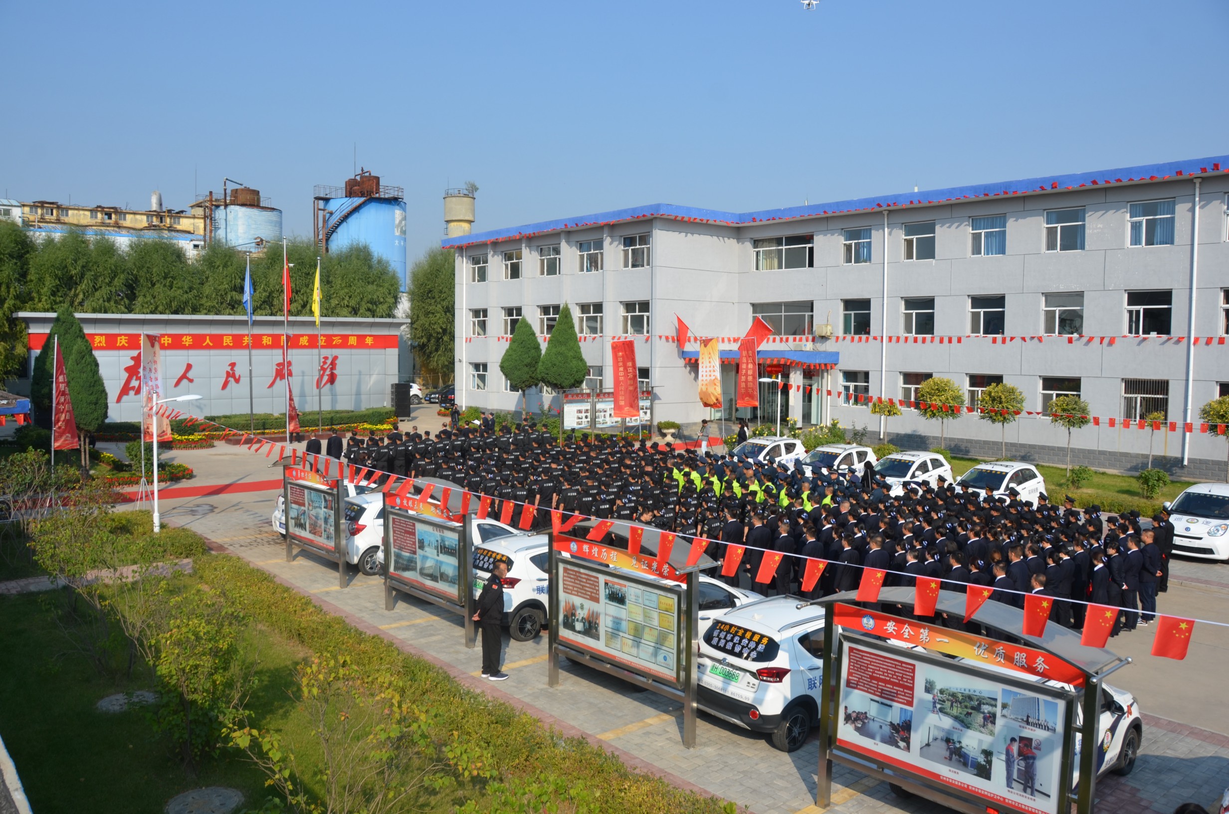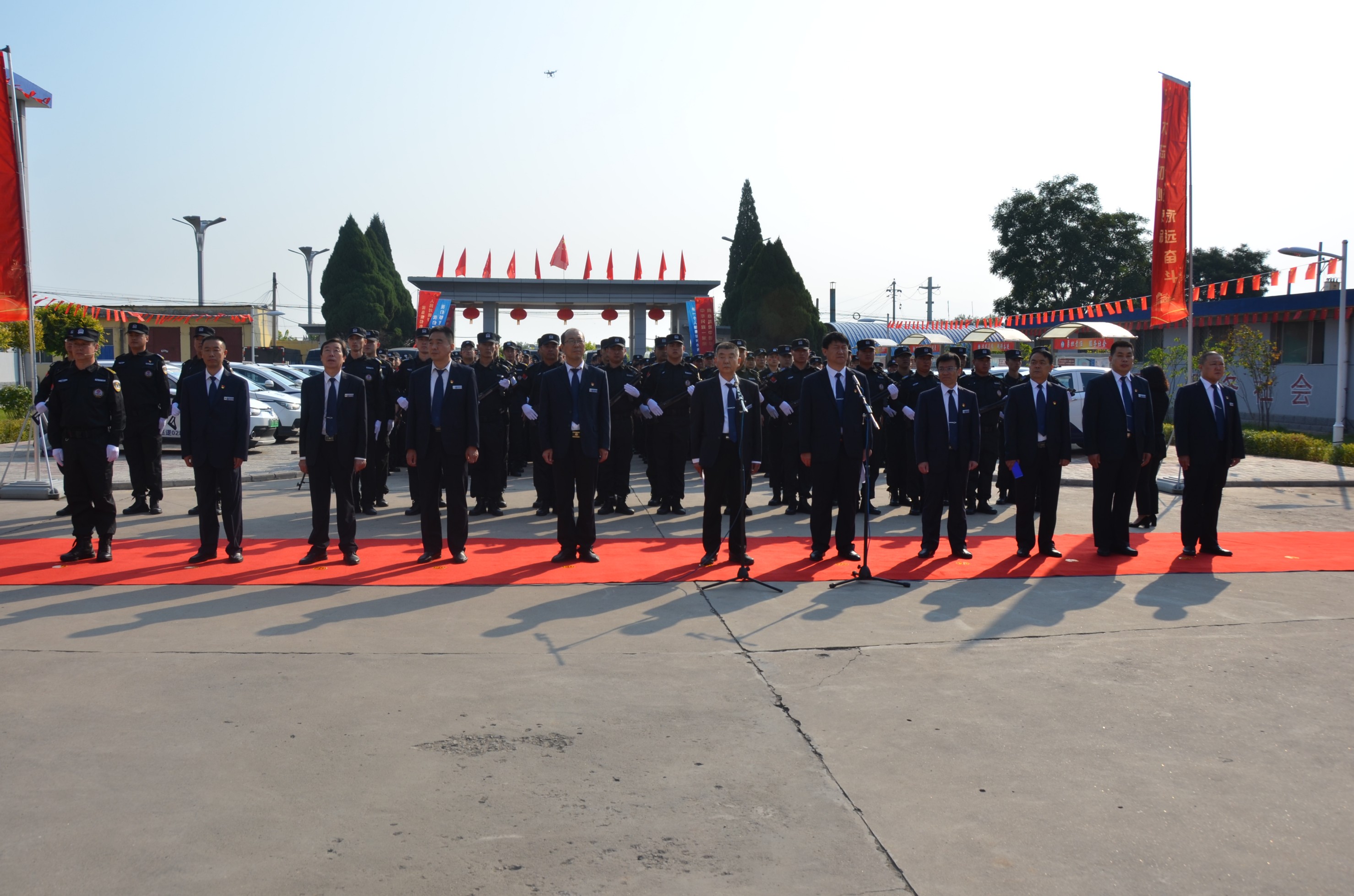 張躍生指出:回顧公司走過的十九年創(chuàng)業(yè)發(fā)展歷程,我們不斷發(fā)展、不斷向前,廣大黨員干部員工始終保持昂揚(yáng)向上的精神狀態(tài),開拓創(chuàng)新、銳意進(jìn)取、團(tuán)結(jié)拼搏、無私奉獻(xiàn),寫下了不平凡的詩篇。希望面臨安保行業(yè)的新機(jī)遇和新挑戰(zhàn),廣大黨員干部職工要統(tǒng)一思想、提高認(rèn)識(shí),增強(qiáng)“四個(gè)意識(shí)”、堅(jiān)定“四個(gè)自信”、做到“兩個(gè)維護(hù)”,深入開展“不忘初心、牢記使命”主題教育,同心同德、真抓實(shí)干,全力以赴做好本職工作,以優(yōu)異的成績(jī)獻(xiàn)禮新中國(guó)七十華誕!儀式在現(xiàn)場(chǎng)全體人員齊聲高唱的《歌唱祖國(guó)》歌聲中達(dá)到高潮,大家揮舞著手中的國(guó)旗,紛紛表達(dá)對(duì)祖國(guó)的良好祝愿。