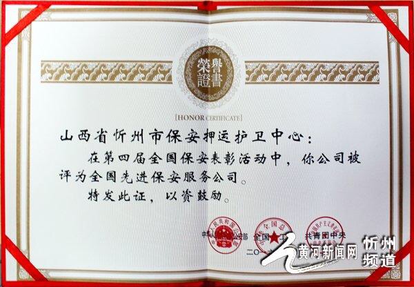 近年來,在市委、市政府和市國資委的正確領(lǐng)導下,在市公安局的高效監(jiān)管下,忻州市保安押運護衛(wèi)中心各項工作進展順利,獲得了山西省五一勞動獎狀、山西省五四紅旗團委、山西省先進保安服務公司、山西省優(yōu)秀企業(yè)、山西省青年文明號、山西省納稅樣本企業(yè)、2015年山西省服務業(yè)企業(yè)80強等一系列榮譽表彰。公司將以榮獲公安部、全國總工會、共青團中央聯(lián)合授予的“第四屆全國先進保安服務公司”榮譽稱號為新起點,再接再厲,繼續(xù)圍繞“創(chuàng)建一流保安、押運企業(yè)”的奮斗目標,大力發(fā)揚“服從大局、服務社會、創(chuàng)新發(fā)展”的企業(yè)精神,為全面推進公司健康、安全、快速發(fā)展,維護全市經(jīng)濟繁榮發(fā)展、社會和諧穩(wěn)定譜寫新的篇章。