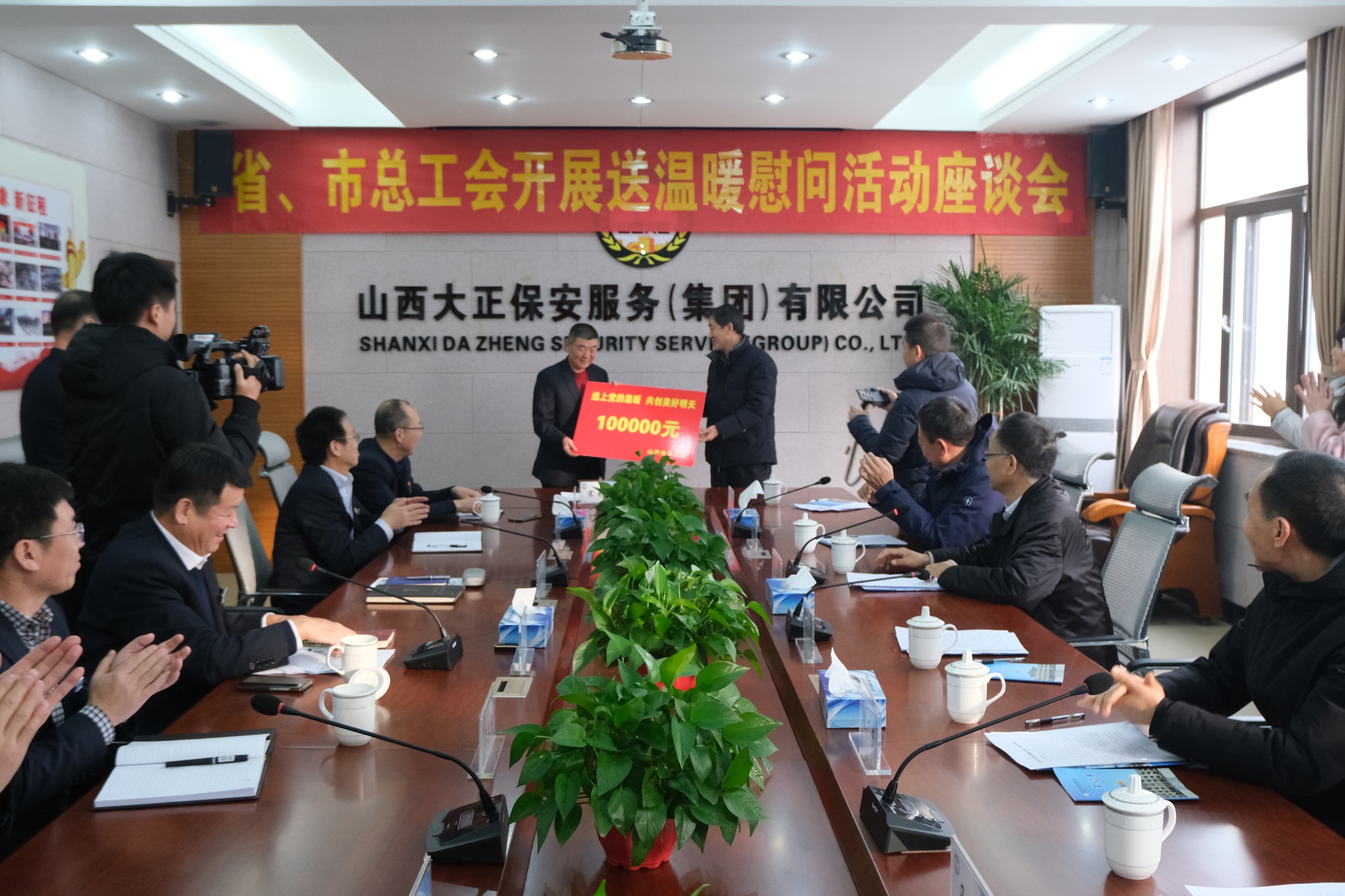 座談會(huì)上,張亞琳副主席為公司贈(zèng)送慰問金10萬(wàn)元。張躍生接過慰問金并代表公司對(duì)省、市總工會(huì)給予的關(guān)心支持表示感謝。