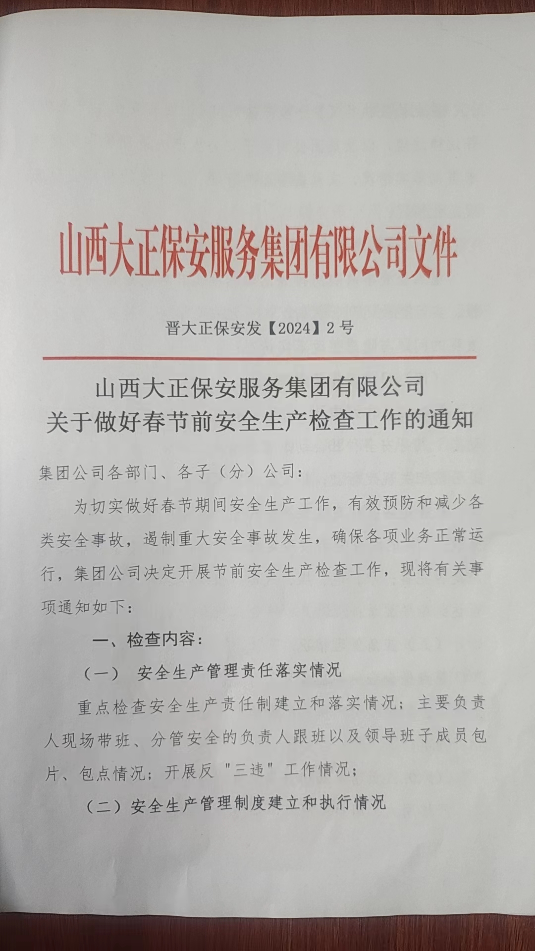 集團公司關(guān)于做好春節(jié)前安全生產(chǎn)檢查工作的通知