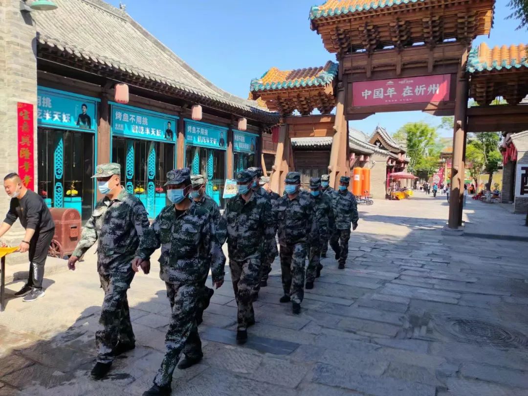 過節(jié)不忘使命,假期不忘戰(zhàn)備。五一勞動(dòng)節(jié)假日期間,受上級指示,忻府區(qū)人武部駐忻州市正大物業(yè)管理有限公司民兵應(yīng)急連進(jìn)行戰(zhàn)備執(zhí)勤,出動(dòng)三個(gè)排次每日巡邏于忻州古城的大街小巷,協(xié)助景區(qū)做好安保維穩(wěn)巡邏和疫情防控工作,確保游客平安游玩。