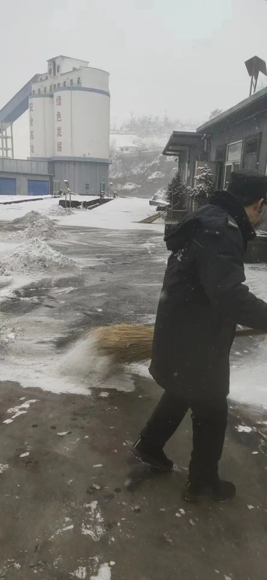 在集團(tuán)公司總部,大家齊心協(xié)力清掃積雪,道路上、臺(tái)階上大家忙碌的身影,成為雪中一道靚麗的風(fēng)景線?偨(jīng)理助理宋林兔現(xiàn)場(chǎng)指揮車輛有序轉(zhuǎn)移,經(jīng)過不懈的努力,道路漸漸地現(xiàn)出了“原貌”。