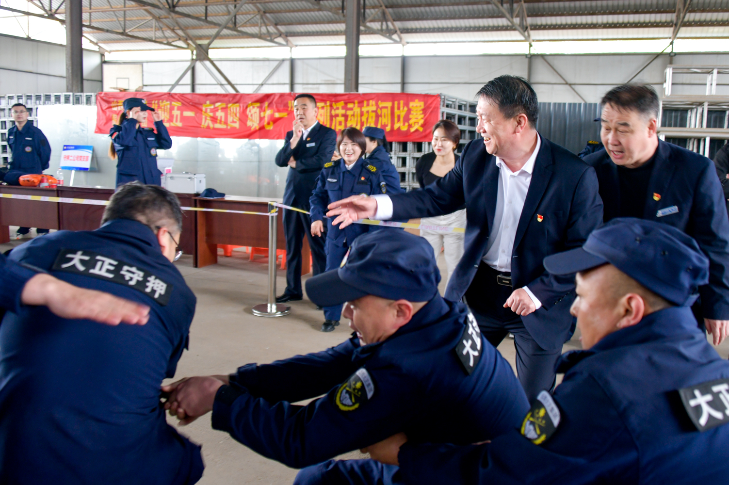 為深入學(xué)習(xí)貫徹黨的二十大精神,團結(jié)引領(lǐng)全公司廣大員工奮進(jìn)新征程、建功新時代,進(jìn)一步活躍員工文化生活,增強廣大員工的凝集力、戰(zhàn)斗力和向心力。5月6日上午,大正集團公司舉行2023年 “迎五一、慶五四、頌七一”拔河比賽。集團公司黨委書記、董事長、總經(jīng)理趙培宏,集團公司黨委副書記、董事、副總經(jīng)理陳志平等公司領(lǐng)導(dǎo)班子成員觀摩比賽,并為現(xiàn)場參賽隊員鼓舞助威。