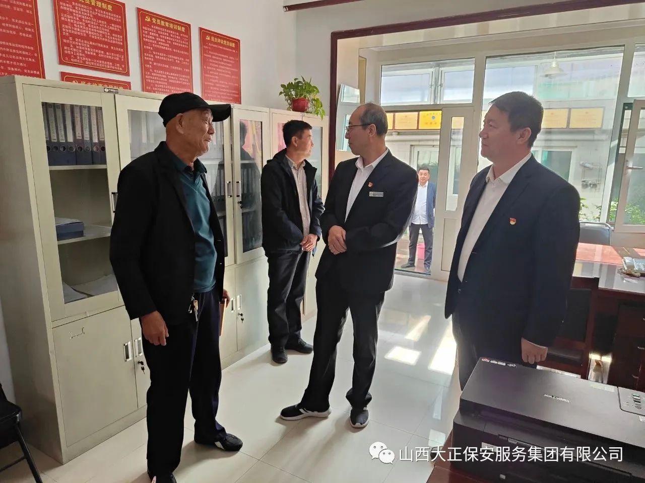 10月9日,山西大正保安服務(wù)集團(tuán)有限公司黨委書記、董事長(zhǎng)、總經(jīng)理趙培宏前往忻州市保安服務(wù)公司、忻州市晉秀保安服務(wù)有限公司開展我市保安行業(yè)發(fā)展現(xiàn)狀調(diào)研活動(dòng),集團(tuán)公司黨委委員、董事、副總經(jīng)理王明生及黨群工作部、辦公室相關(guān)同志陪同。