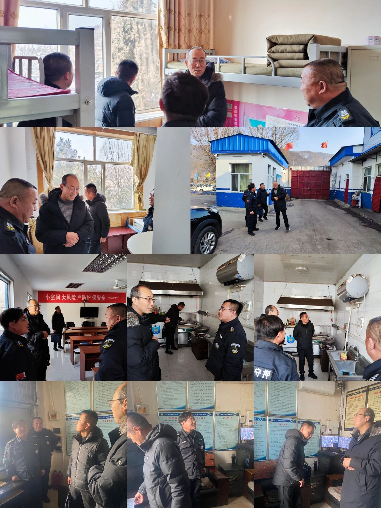 各檢查組不顧舟車勞頓,每到一處都是積極與員工開展談心談話,噓寒問暖,傾聽員工心聲愿望,了解員工生活疾苦,代表集團送上節(jié)日的慰問。對各基層中隊重點區(qū)域、重要設(shè)施、重點環(huán)節(jié)進行了一一檢查,突出對基層單位的人車槍彈庫、水電油氣灶等的逐項摸排,真正做到任務(wù)細(xì)致、責(zé)任明確、分工具體、各負(fù)其責(zé)。對檢查中發(fā)現(xiàn)的所有隱患,嚴(yán)格按照“定時間、定責(zé)任人、定整改措施”的原則,建立問題臺帳,明確整改時限,督促完成整改,并對下一步安全運營工作提出具體要求,形成抓好安全工作的長效機制。