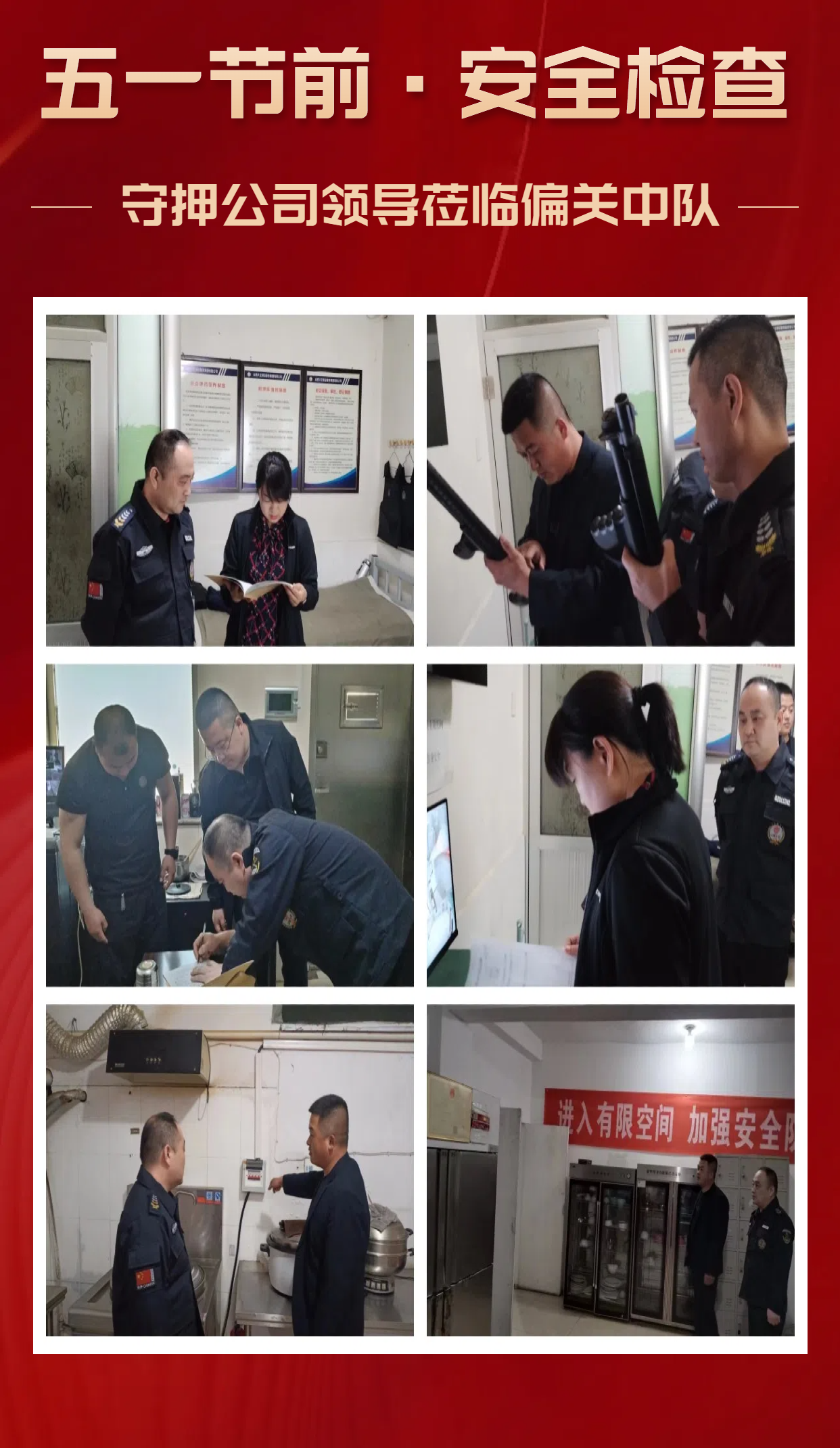 為貫徹落實集團(tuán)公司《關(guān)于做好2024年“五一”勞動節(jié)期間安保工作的通知》的各項工作安排及要求,集團(tuán)公司安全保衛(wèi)部及各子分公司負(fù)責(zé)人認(rèn)真組織并開展了節(jié)前安全大檢查大整改,全面排查各駐地配套設(shè)施、執(zhí)勤駐點及公司辦公大樓的安全風(fēng)險和隱患,以杜絕所屬工作區(qū)域內(nèi)各類安全事故的發(fā)生,進(jìn)一步加固客戶單位的安全防護(hù)網(wǎng),為即將到來的“五一”勞動節(jié)營造一個安全、穩(wěn)定、和諧的氛圍。