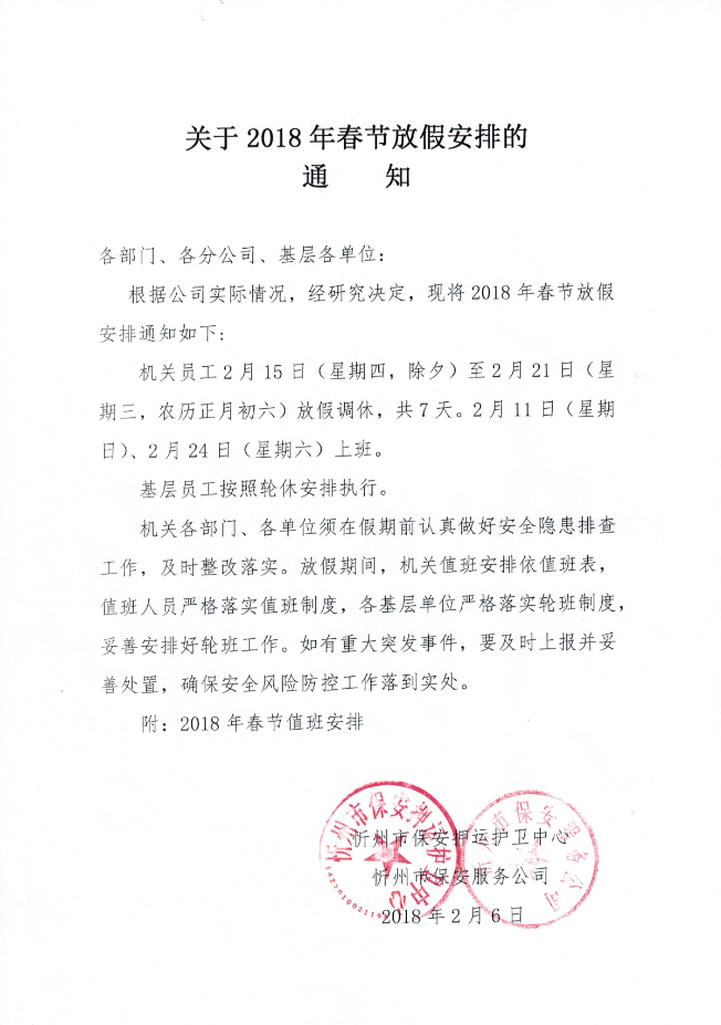 2018年春節(jié)值班安排