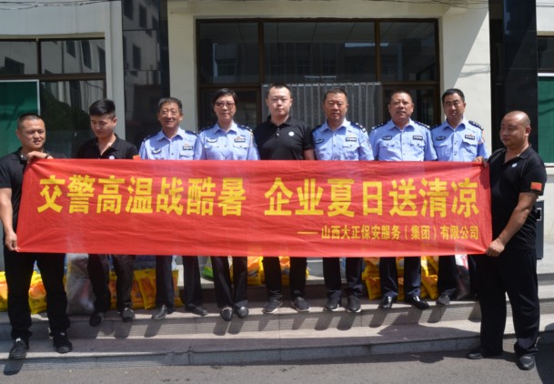公司慰問人員對一線執(zhí)勤民警在高溫酷暑中堅守崗位,無私奉獻,全力保障市區(qū)道路安全暢通的工作精神表示由衷欽佩,各交警部門負責人對山西大正保安服務(集團)有限公司對交警部門工作的支持與配合表示感謝,表示將會立足本職,堅守崗位,為人民群眾的生命財產(chǎn)安全保駕護航,為城區(qū)道路的和諧穩(wěn)定貢獻自己的力量。