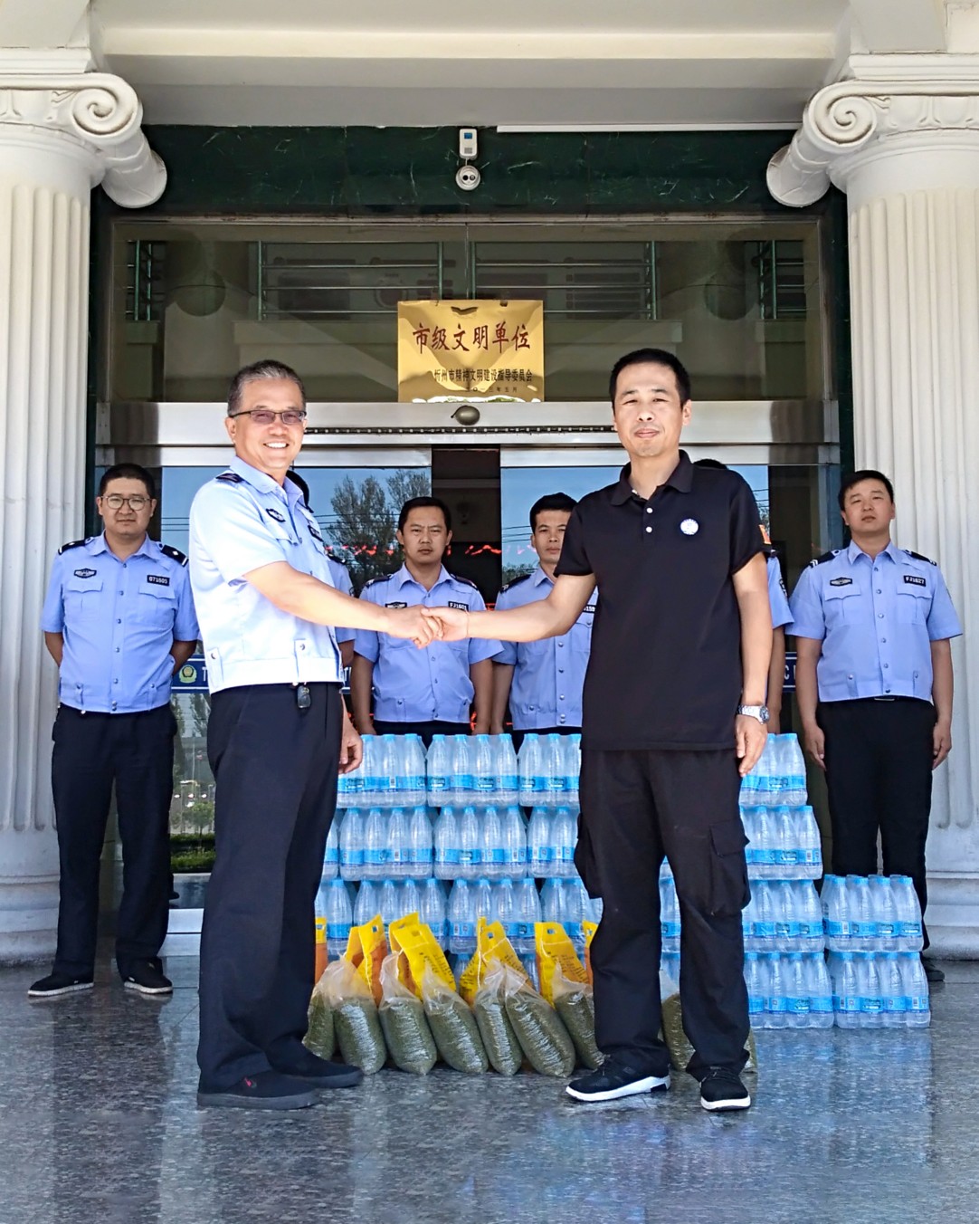 本次山西大正保安服務(集團)有限公司共計慰問34家基層交警,送去礦泉水1560件、小米340袋、綠豆340袋。