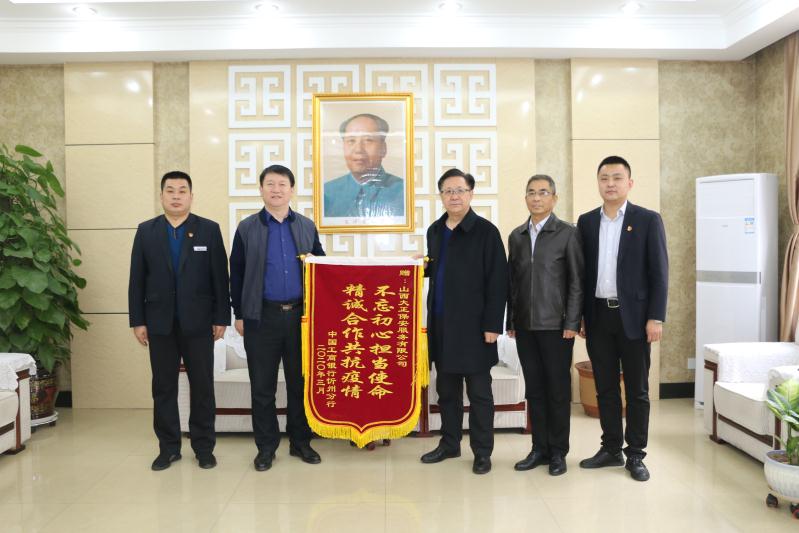 吉繼福對(duì)大正集團(tuán)守押公司保安人員在春節(jié)及抗擊新冠肺炎疫情期間,舍小家為大家,公司落實(shí)安全措施,責(zé)任層層壓實(shí),為工商銀行忻州分行提供準(zhǔn)時(shí)準(zhǔn)點(diǎn)押調(diào)款、安保服務(wù)工作表示肯定,并代表工行忻州分行向集團(tuán)公司贈(zèng)送錦旗,希望雙方今后繼續(xù)加強(qiáng)合作、互惠共贏。