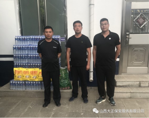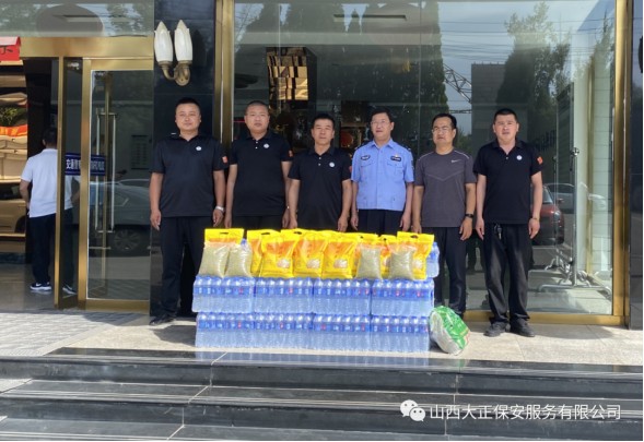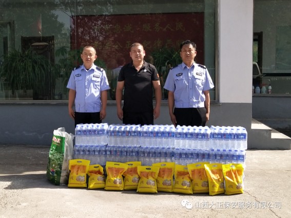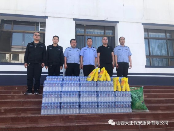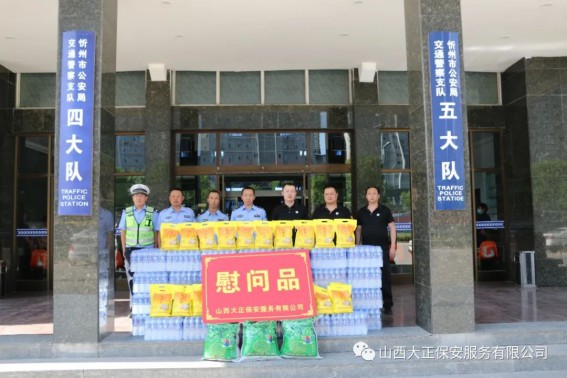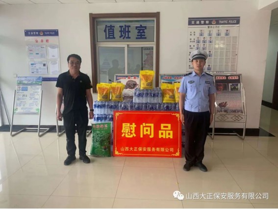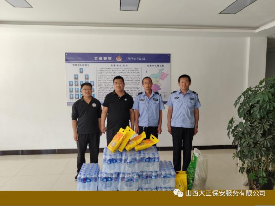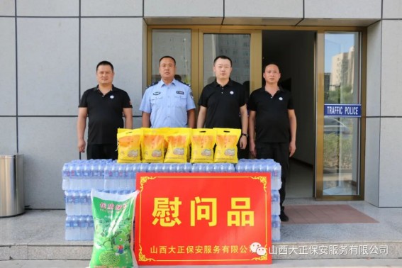 6月3日,山西大正保安服務(wù)(集團(tuán))有限公司河曲中隊(duì)代理中隊(duì)長(zhǎng)霍健,帶領(lǐng)中隊(duì)隊(duì)員代表公司慰問(wèn)了河曲縣公安局交通警察大隊(duì),為奮斗在交通指揮一線的縣交警大隊(duì)民警送去防暑降溫慰問(wèn)品。將關(guān)愛(ài)送到一線,把清涼送到一線,確保一線交通干警同志們度過(guò)一個(gè)安全、衛(wèi)生、清涼的夏季。感謝一線交警不畏烈日、日夜堅(jiān)守崗位,確保了城區(qū)干道交通暢通、人民出行安全,營(yíng)造了良好的道路交通環(huán)境。交警大隊(duì)副隊(duì)長(zhǎng)李強(qiáng)接受了慰問(wèn),并表示:“有了企業(yè)的關(guān)愛(ài)及社會(huì)各界的理解和支持,讓交警感受到了無(wú)盡的清涼。全體民輔警將繼續(xù)發(fā)揚(yáng)‘能吃苦、能戰(zhàn)斗、能奉獻(xiàn)’的優(yōu)良作風(fēng),以更加飽滿的工作熱情投入工作中,以實(shí)際行動(dòng)回報(bào)社會(huì)各界的關(guān)愛(ài)。”