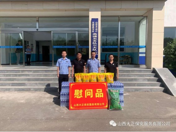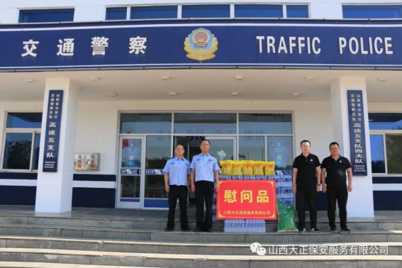 在慰問(wèn)中,山西大正保安服務(wù)有限公司守押偏關(guān)中隊(duì)帶著對(duì)交通民警的敬意,為交警們送來(lái)防暑用品,表達(dá)了公司對(duì)交通民警奉獻(xiàn)精神的感謝。并希望這次慰問(wèn)活動(dòng)給大家?guī)?lái)一絲清涼。交警的工作十分辛苦,尤其是在夏季頂著炎炎烈日,為維護(hù)道路交通秩序做出了突出貢獻(xiàn),為廣大群眾出行提供安全暢通的環(huán)境。