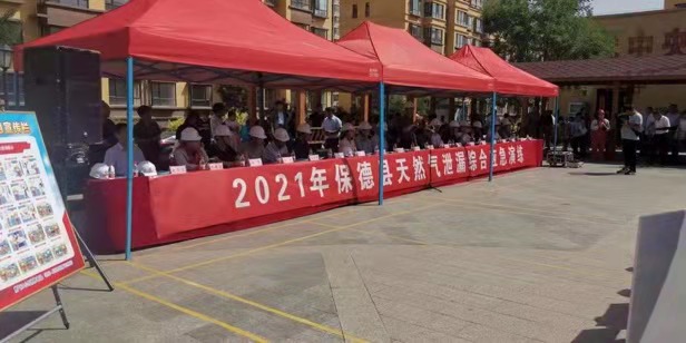 演練科目為上午9時(shí)20分,保德縣新城區(qū)惠民家園東區(qū)七號(hào)樓燃?xì)夤艿辣I用燃?xì)庠斐墒覂?nèi)燃?xì)獯罅啃孤,引發(fā)室內(nèi)燃?xì)獗计鸹,燃燒引燃廚房?jī)?nèi)雜物,且爆燃造成的陽(yáng)臺(tái)玻璃破碎散落,周?chē)罕娸^多場(chǎng)面混亂,造成一人輕傷一人被困,現(xiàn)場(chǎng)人員立即向燃?xì)夤緢?bào)警。