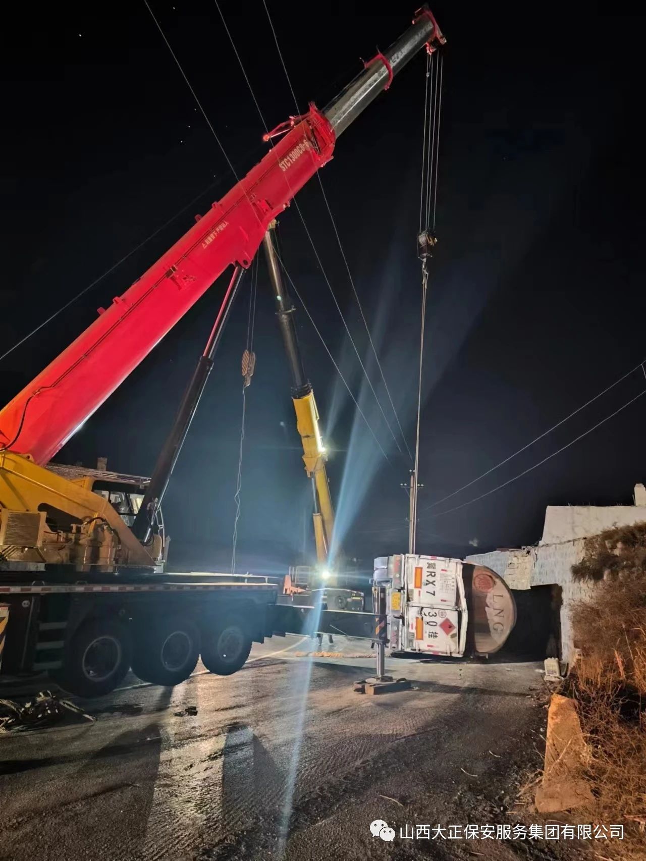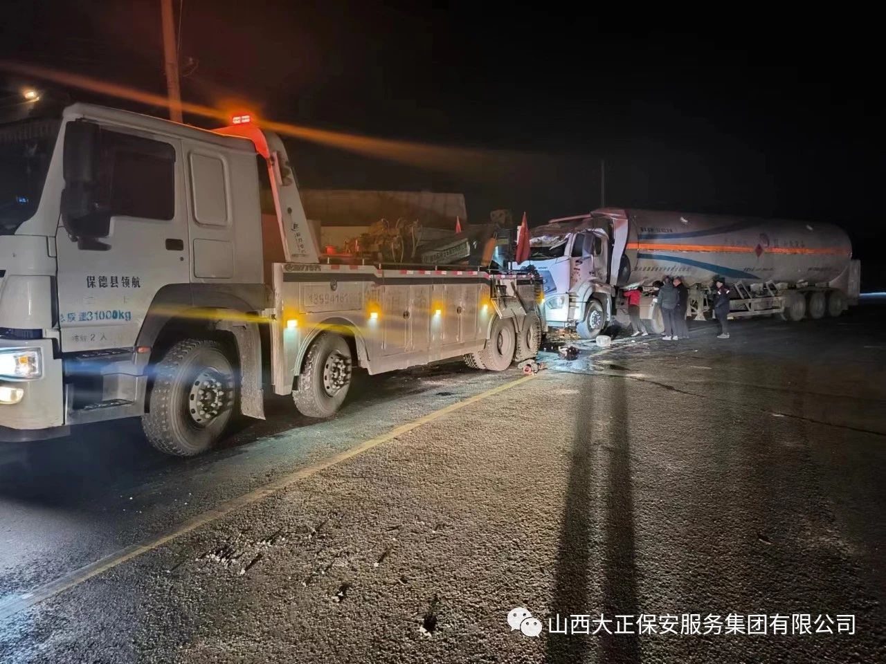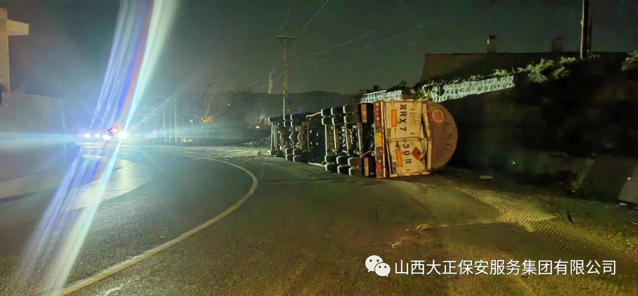 2023年11月23日晚8時,山西大正保安集團(tuán)公司保德縣守押中隊?wèi)?yīng)急救援大隊接到應(yīng)急局出勤指令,棗林坡有滿載液化氣罐車發(fā)生側(cè)翻,需要派出應(yīng)急人員控制現(xiàn)場,并協(xié)助處理側(cè)翻事故。應(yīng)急救援大隊接到命令后,派出應(yīng)急車輛兩部及應(yīng)急人員5人趕赴現(xiàn)場,協(xié)助交警對現(xiàn)場路段進(jìn)行管控,保證周圍車輛人員安全。